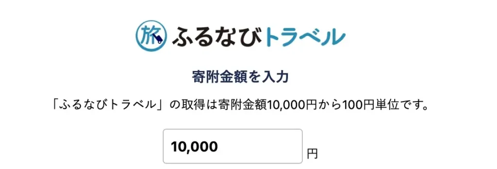10,000円から100円単位でふるなびマネーからふるなびトラベルポイントに替えられます。