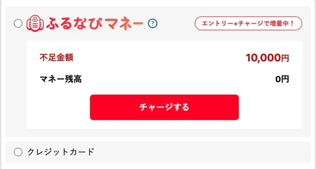 これまでは「返礼品を選んでクレカ決済」という1ステップで済みましたが、ふるなびマネーは「エントリー」と「チャージ」という工程が加わります。